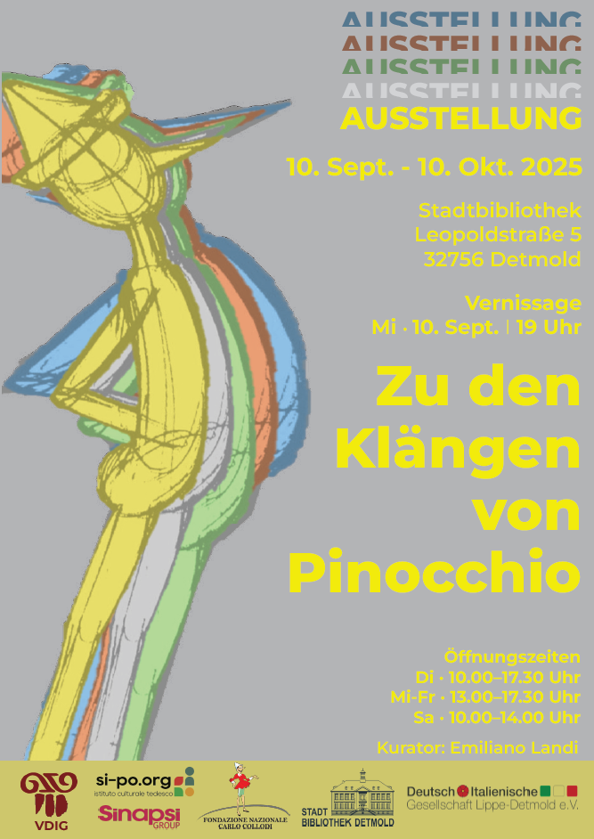 Die Ausstellung umfasst Bilder und Skulpturen, die sich auf musikalische Weise mit Pinocchio und seinen WeggefährtInnen befassen und uns mit der berühmtesten Figur Italiens die Magie der Musik und Oper näherbringen.